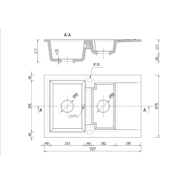 wymiary zlewu jednokomorowego