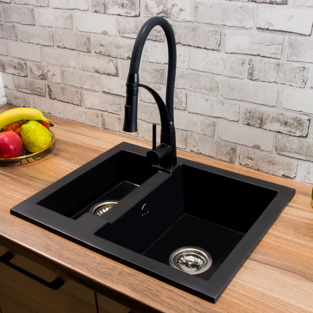 Zlewozmywak kuchenny półtorakomorowy Yogi wykonany z mieszanki granitu i spoiwa granitowego w stosunku 80% do 20%, co gwarantuje wysoką odporność na uszkodzenia mechaniczne, różnice temperatur oraz zarysowania. Można na nich bezpiecznie odłożyć gorące garnki o temperaturze do 280°C.