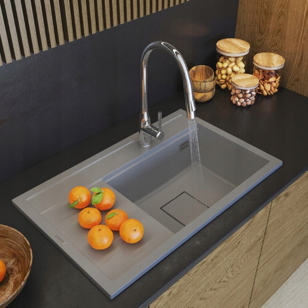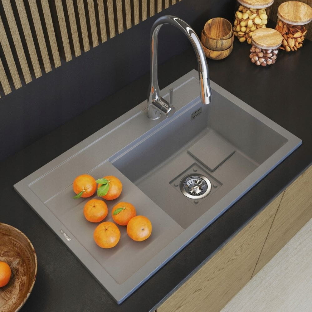 Zlewozmywak granitowy szary Rendo - maskownica - syfon - komora prawa