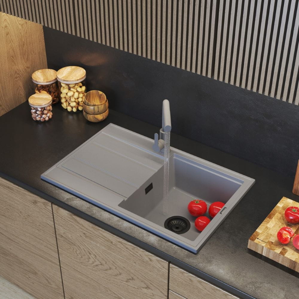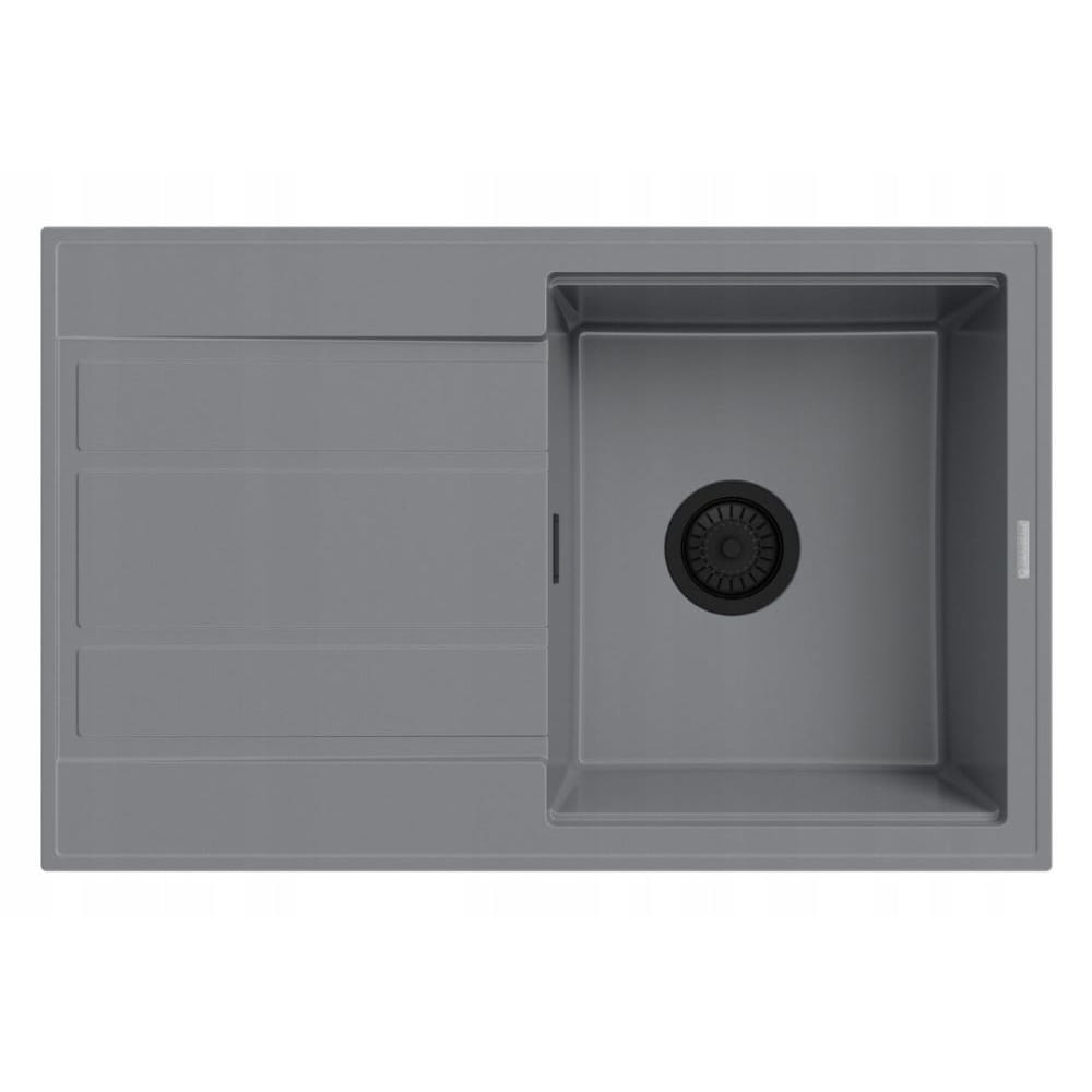 Zlewozmywak granitowy szary z ociekaczem jednokomorowy - syfon - zestaw Timor