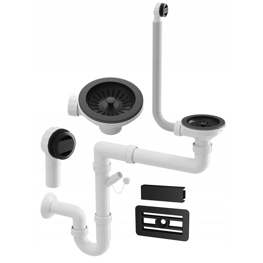 ● Przyścienny syfon manualny CZARNY z możliwością podłączenia zmywarki i pralki (oszczędność przestrzeni).