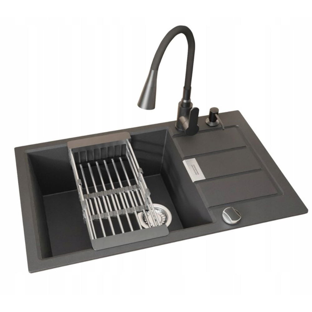 Zlewozmywak jednokomorowy z ociekaczem Franke Sirius Sid 2.0 S2D 611-78 XL czarny onyx z baterią Flexo