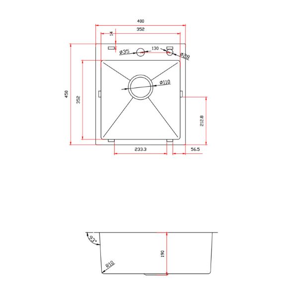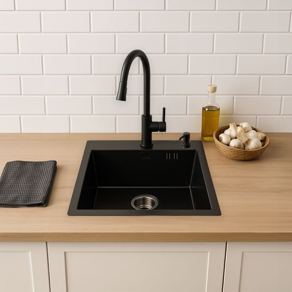 Zlewozmywak kuchenny jednokomorowy stalowy czarny ALOR-BL-40X45 - dozownik - syfon