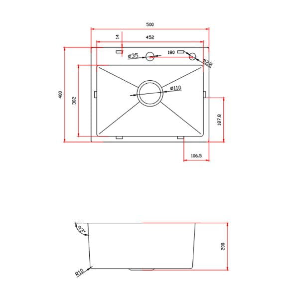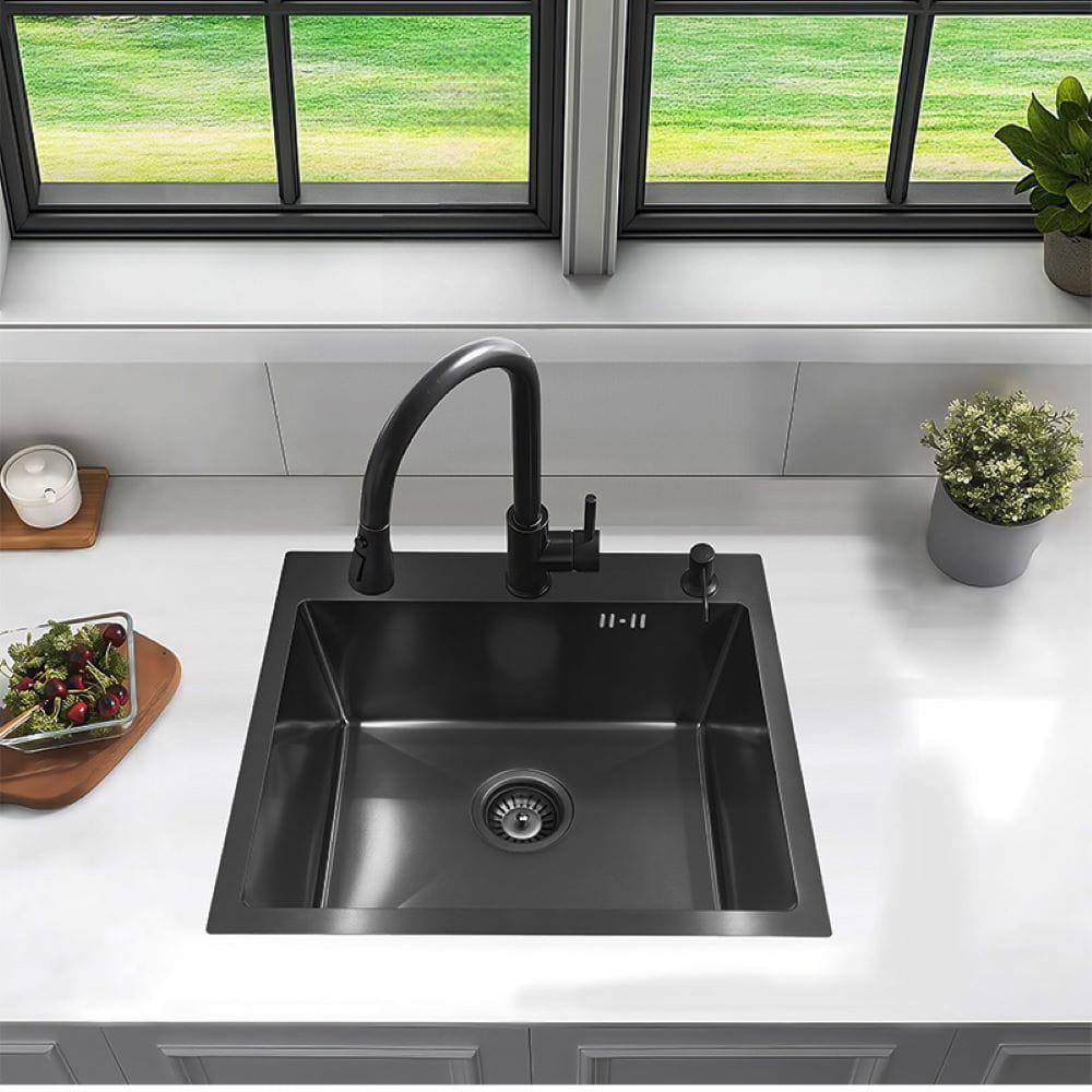 Zlewozmywak kuchenny jednokomorowy stalowy czarny ALOR-BL-50X40 - dozownik - syfon