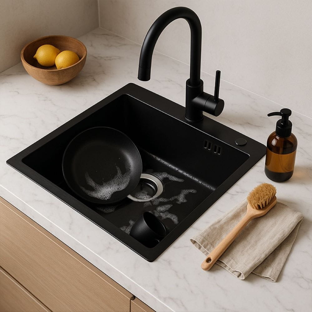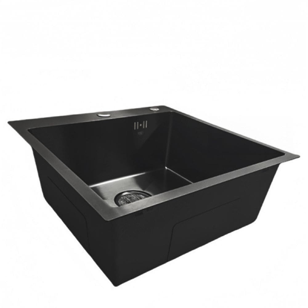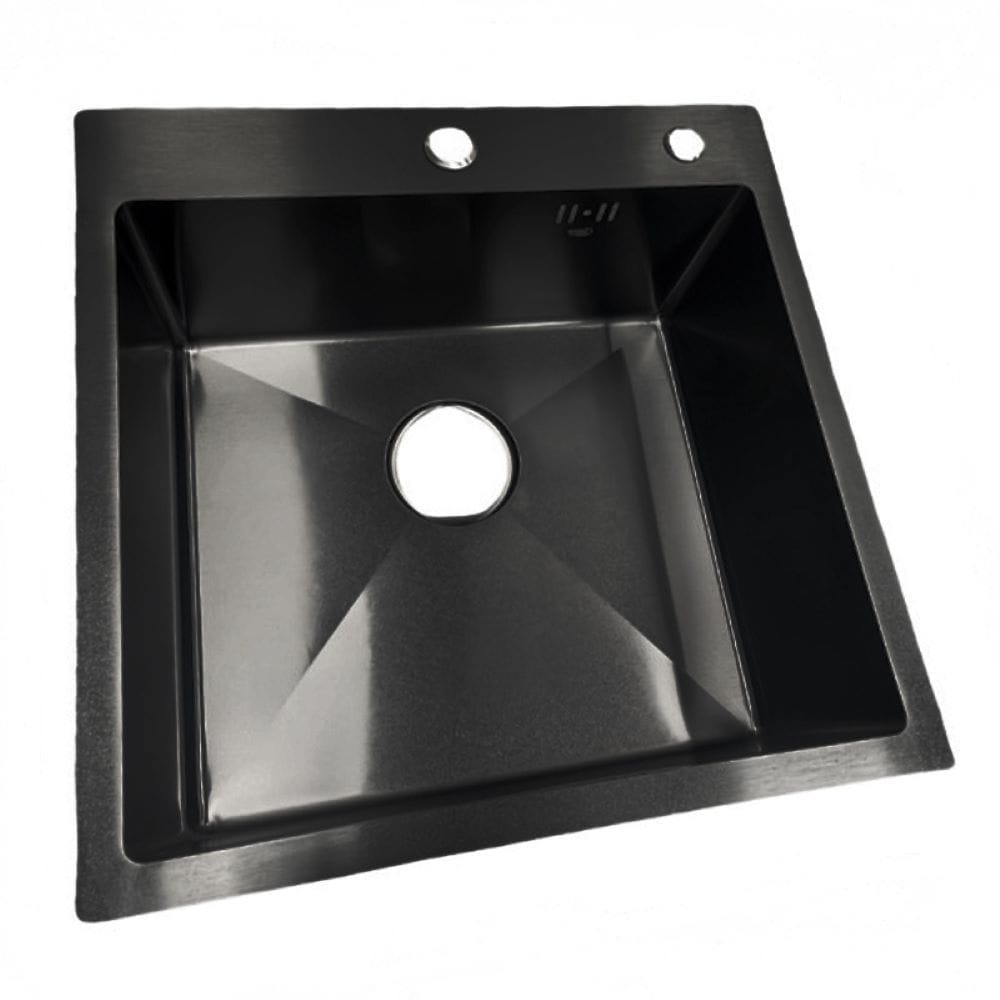 Zlewozmywak kuchenny jednokomorowy stalowy czarny ALOR-BL-50X50 - dozownik - syfon
