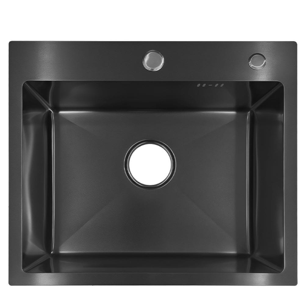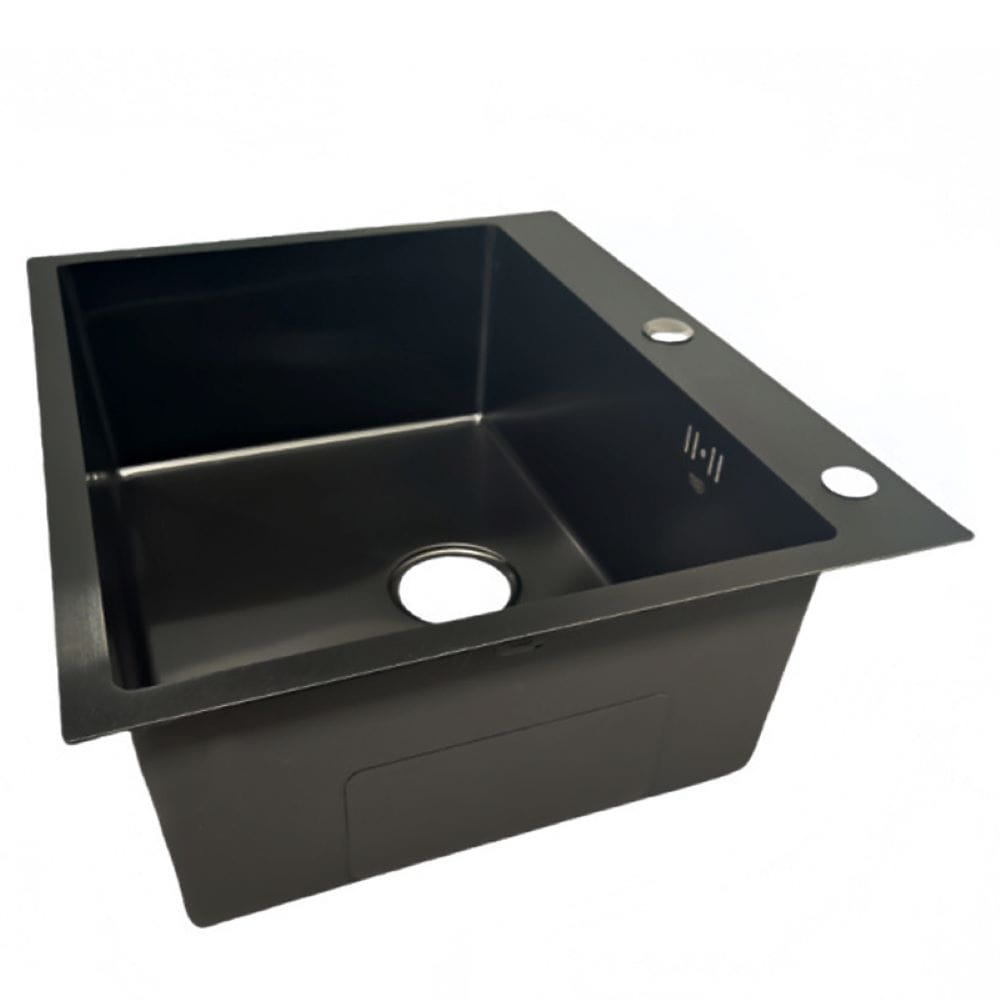 Zlewozmywak kuchenny jednokomorowy stalowy czarny ALOR-BL-59X49 - dozownik - syfon