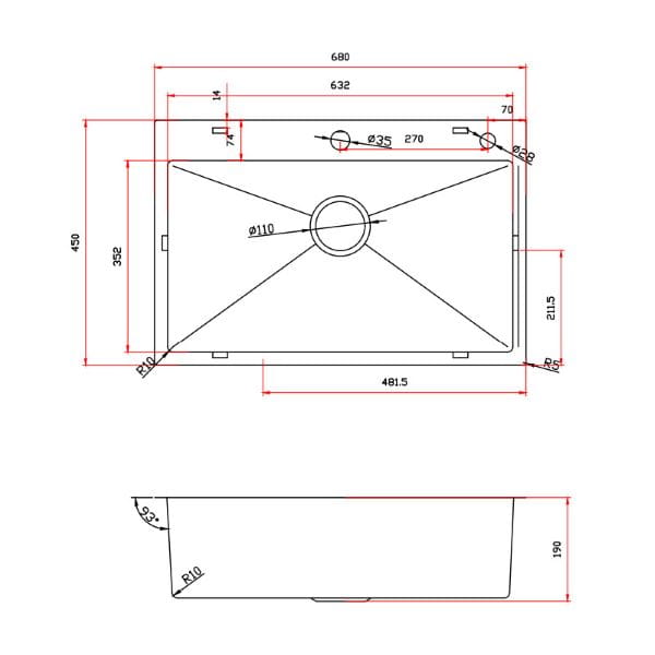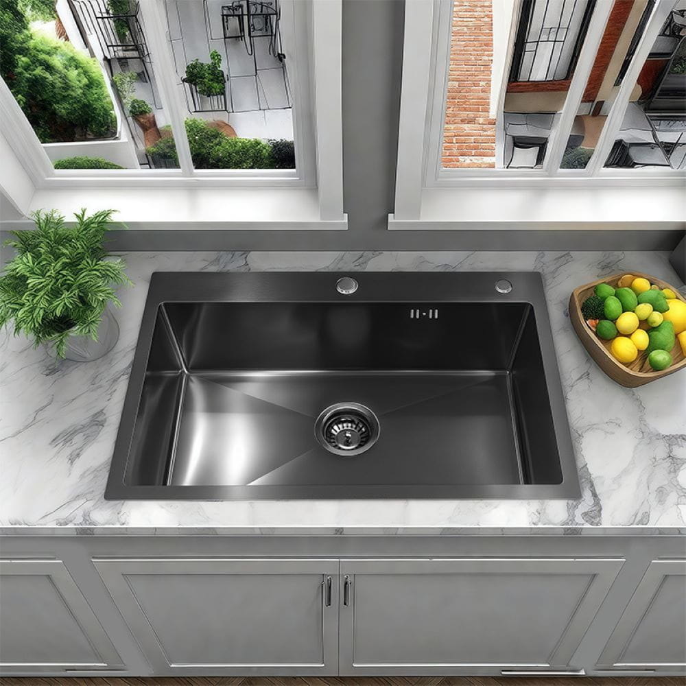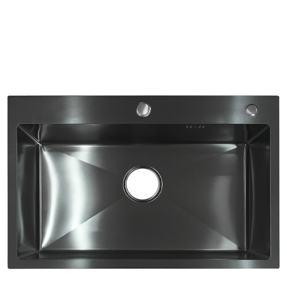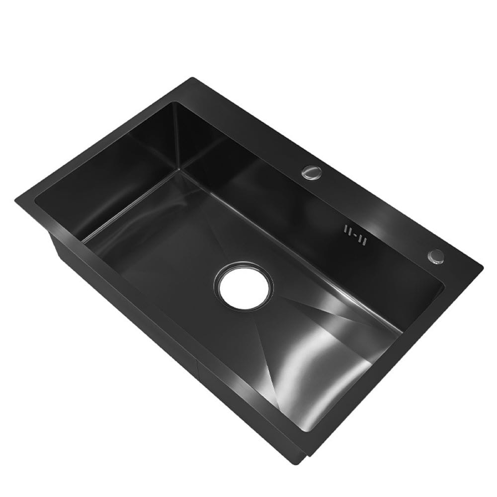 Zlewozmywak kuchenny jednokomorowy stalowy czarny ALOR-BL-68X45 - dozownik - syfon