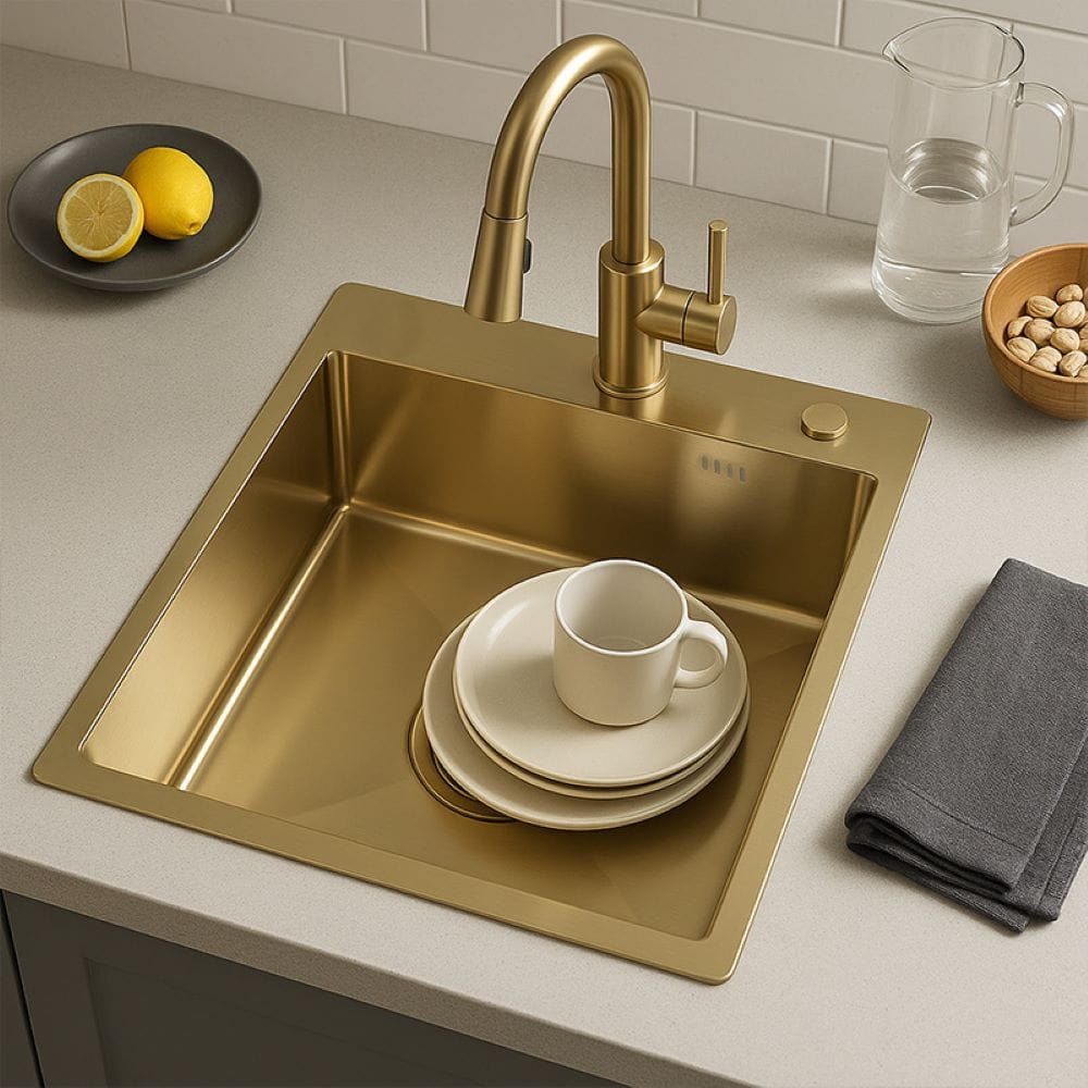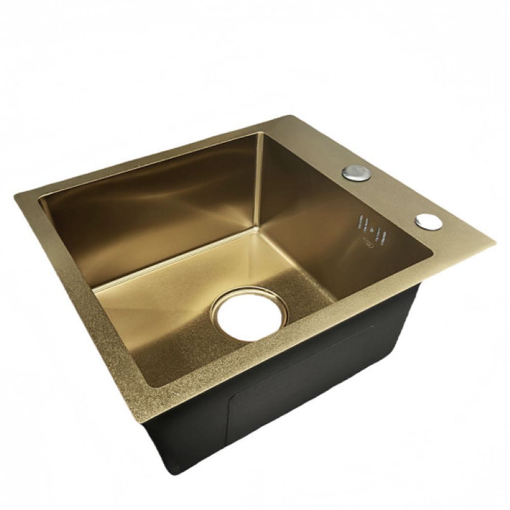 Zlewozmywak kuchenny jednokomorowy stalowy złoty ALOR-GL-40X45 - dozownik - syfon