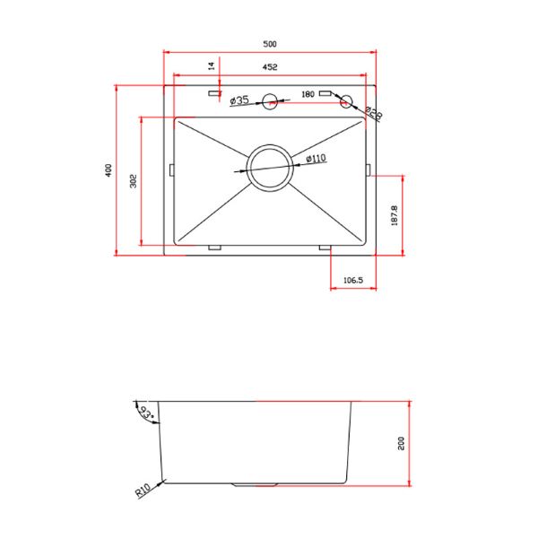 Zlewozmywak Stalowy Jednokomorowy Czarny Bario 40x50