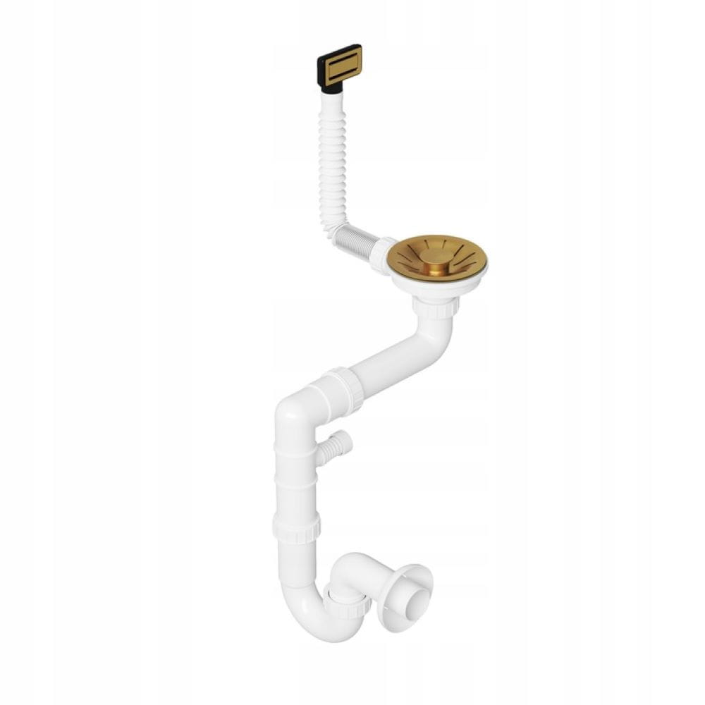 W skład zestawu wchodzą: zlewozmywak, syfon przyścienny manualny Lux w kolorze złotym oraz komplet uchwytów do montażu.